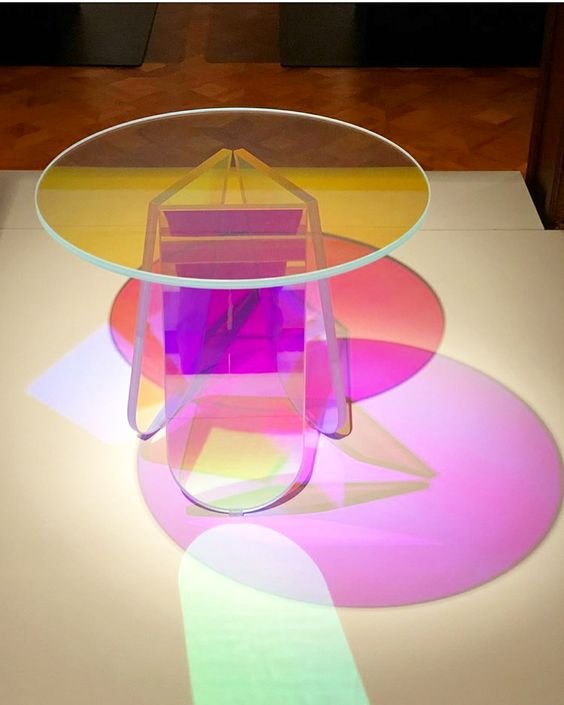 Dichroic is a conceptual exploration that reimagines the boundary between functional furniture and fine art, translating the abstract geometric theories of Wassily Kandinsky into three-dimensional form. By centering the collection on the unique materiality of plexiglass and light-reactive surfaces, the project treats each piece as a living installation; as natural light interacts with these transparent mediums, it creates a shifting chromatic spectrum that evolves based on the viewer’s perspective. This approach is deeply rooted in the legacy of the Italian "Art-Design" movement, which famously dissolved the walls between the gallery and the domestic environment. By prioritizing sculptural expression and visual narrative, Dichroic seeks to elevate everyday furniture into a curated sensory experience, transforming utilitarian objects into a cohesive Gesamtkunstwerk for the modern interior.