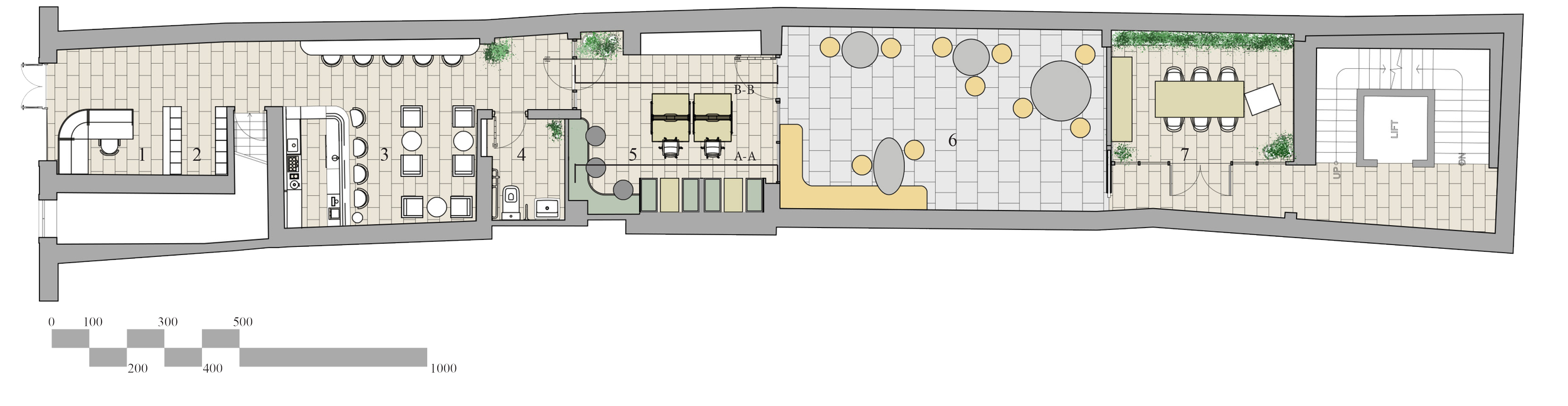 around 170 sqm ground floor space including 40 sqm open air courtyard