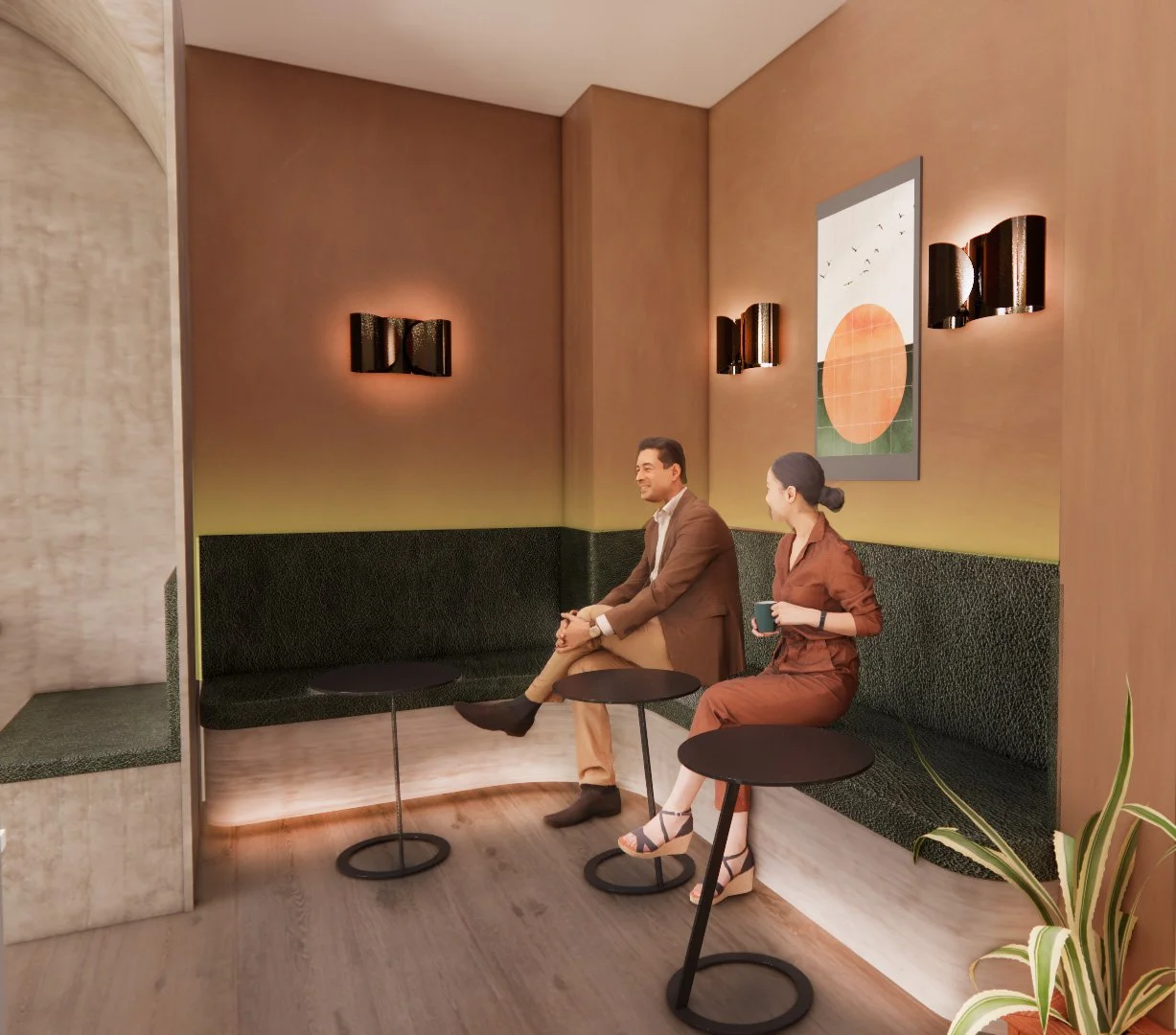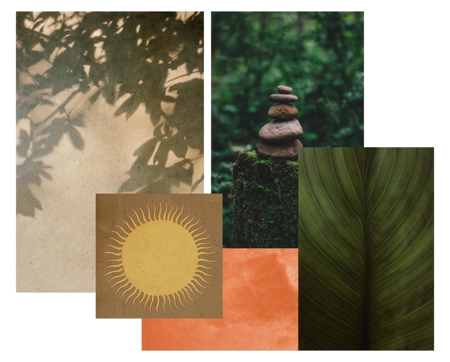 This design reimagines the historic essence of Florence’s Sant’Ambrogio through a contemporary lens, blending sharp modern lines with the organic beauty of the natural world. The moodboard captures this harmony through a palette of earthy terracottas, leathers, and verdant greens, reflecting the city’s traditional textures within a sleek, minimalist framework. By integrating rhythmic botanical motifs and dappled light, the space creates a grounding connection to the environment while honoring Florentine heritage. This aesthetic reflects a sophisticated brand development strategy that pairs mid-century Italian sensibilities with a deep appreciation for architectural frameworks found in nature. The resulting atmosphere provides a restorative experience, utilizing nature-inspired design to create a space that feels both timeless and restorative for the visitor.